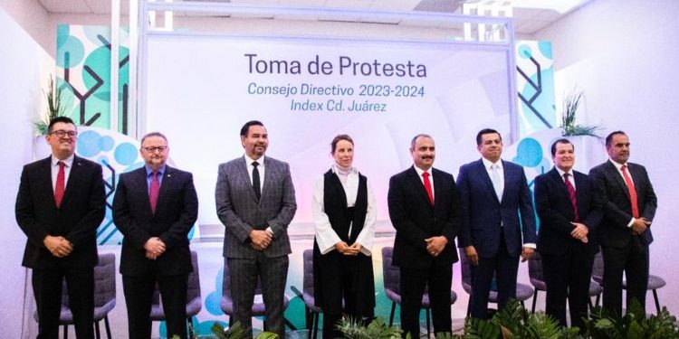 La Secretaría de Innovación y Desarrollo Económico (SIDE) reiteró el compromiso de Gobierno del Estado para trabajar articuladamente en el desarrollo económico de la frontera, en el marco de la Toma de Protesta del Consejo Directivo 2023-2024 de INDEX Juárez, el cual será encabezado por Sergio Daniel Colín Chávez.