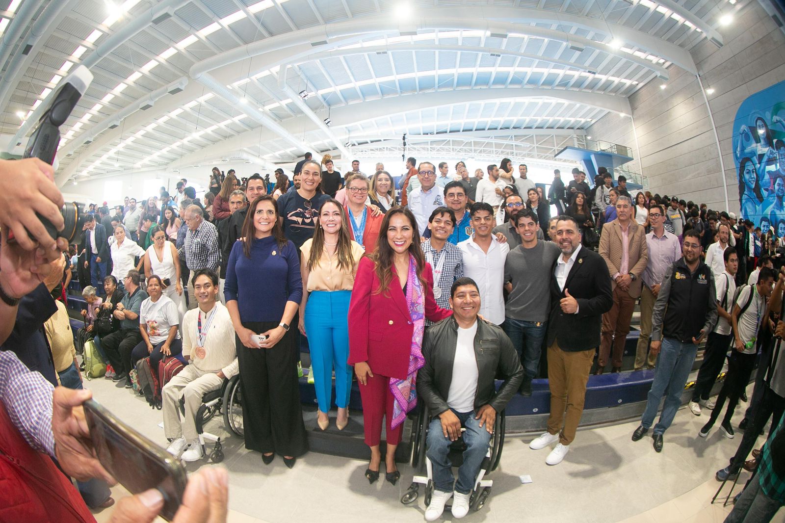 Y qué mejor reapertura se puede tener, al contar con grandes campeonas y campeones, deportistas de alto rendimiento y grandes talentos de la natación de nuestro estado como Celia Pulido y Liliana Ibáñez; en natación para personas con discapacidad, Steven Martínez Arellano; y de paranatación a Juan José Gutiérrez, Jesús Alberto Gutiérrez, Raúl Gutiérrez, Ángel de Jesús Camacho y Jesús Hernández, resaltó la Gobernadora.