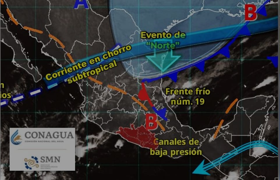 De acuerdo con la dependencia, estas condiciones se deben al avance gradual de un Canal de Baja Presión y del Frente Frío Núm. 19, los cuales comenzarán a extenderse hacia el norte del estado, favoreciendo el desarrollo de nubosidad y un descenso notable de la temperatura en el transcurso de la tarde y noche.