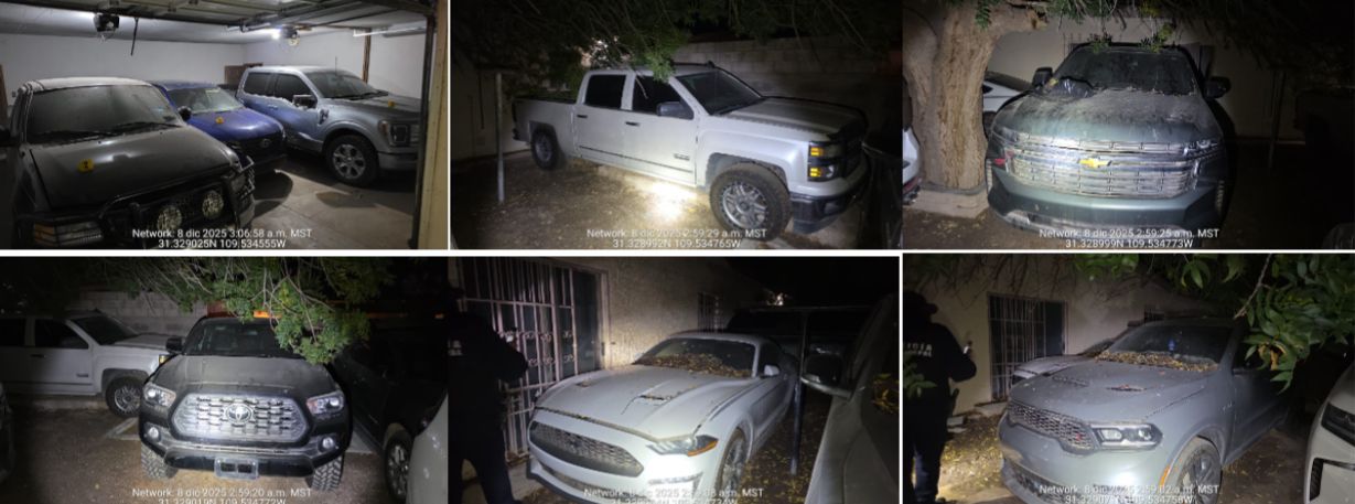El operativo se realizó a las 2:40 de la madrugada del lunes 8 de diciembre, derivado de una diligencia de cateo solicitada por la Fiscalía General de Justicia del Estado de Sonora, en coordinación con las corporaciones que integran el Gabinete de Seguridad del Estado. Entre las unidades aseguradas se encuentran camionetas de reciente modelo, vehículos de alta gama y unidades con modificaciones especiales de blindaje.