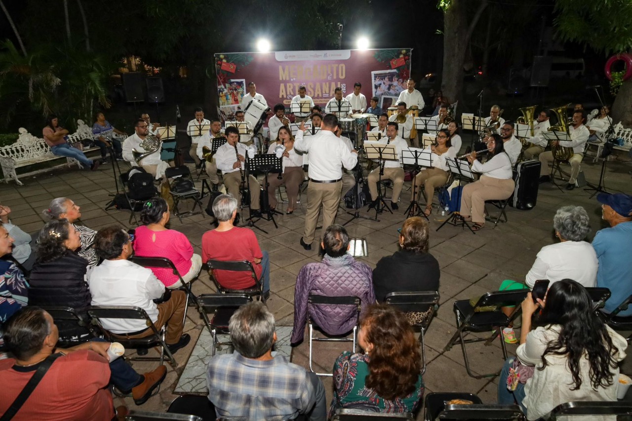 Las presentaciones artísticas concluyeron con el concierto especial de la Banda Sinfónica del Gobierno del Estado de Colima. El Mercadito Artesanal, iniciativa de la administración estatal que encabeza la gobernadora Indira Vizcaíno Silva, es realizado por el departamento de Culturas Populares, tiene el objetivo de difundir y promover el trabajo de las y los artesanos de la entidad y brindarles un espacio que coadyuve en la comercialización de sus productos para impulsar su desarrollo económico.