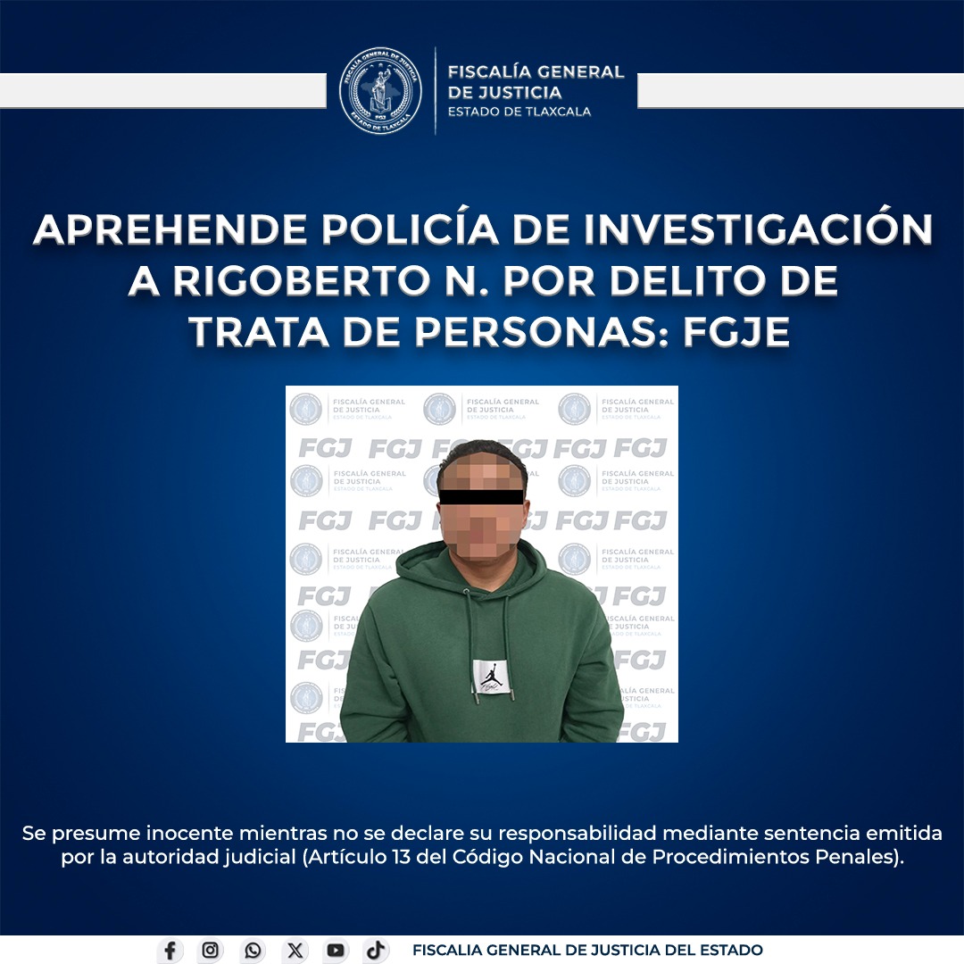 Las labores de inteligencia realizadas por la Policía de Investigación permitieron que la Fiscalía General de Justicia del Estado (FGJE) aprehendiera a Rigoberto N. por el delito de trata de personas.