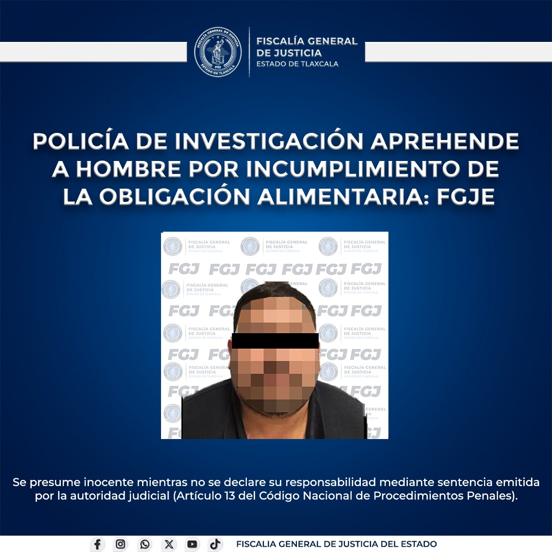 Elementos de la Policía de Investigación de la Fiscalía General de Justicia del Estado (FGJE) ejecutaron una orden de aprehensión en contra de Pedro N., por el delito de incumplimiento de la obligación alimentaria.