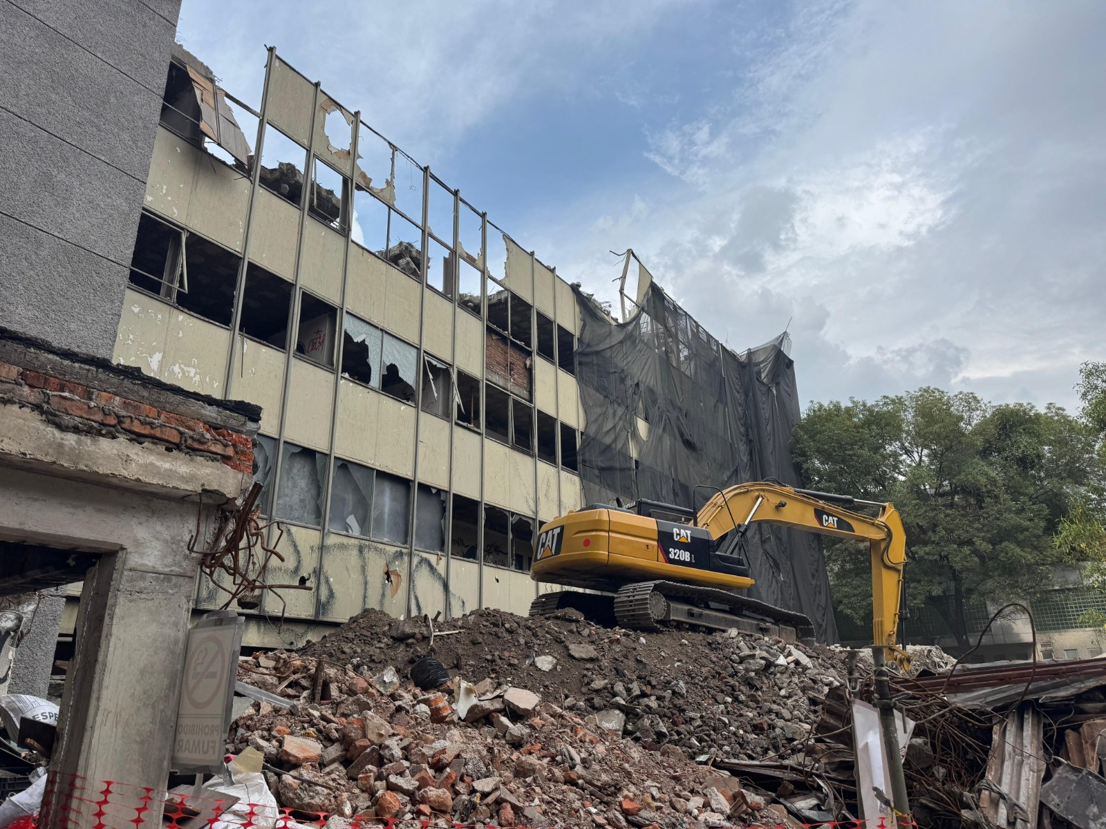 Cabe subrayar que actualmente se registra un 20 por ciento en el progreso de los trabajos de demolición de los tres cuerpos que integraban el inmueble, pues el Edificio C ya fue demolido en su totalidad, mientras que la mitad de la estructura del Edifico B ya fue derribada.